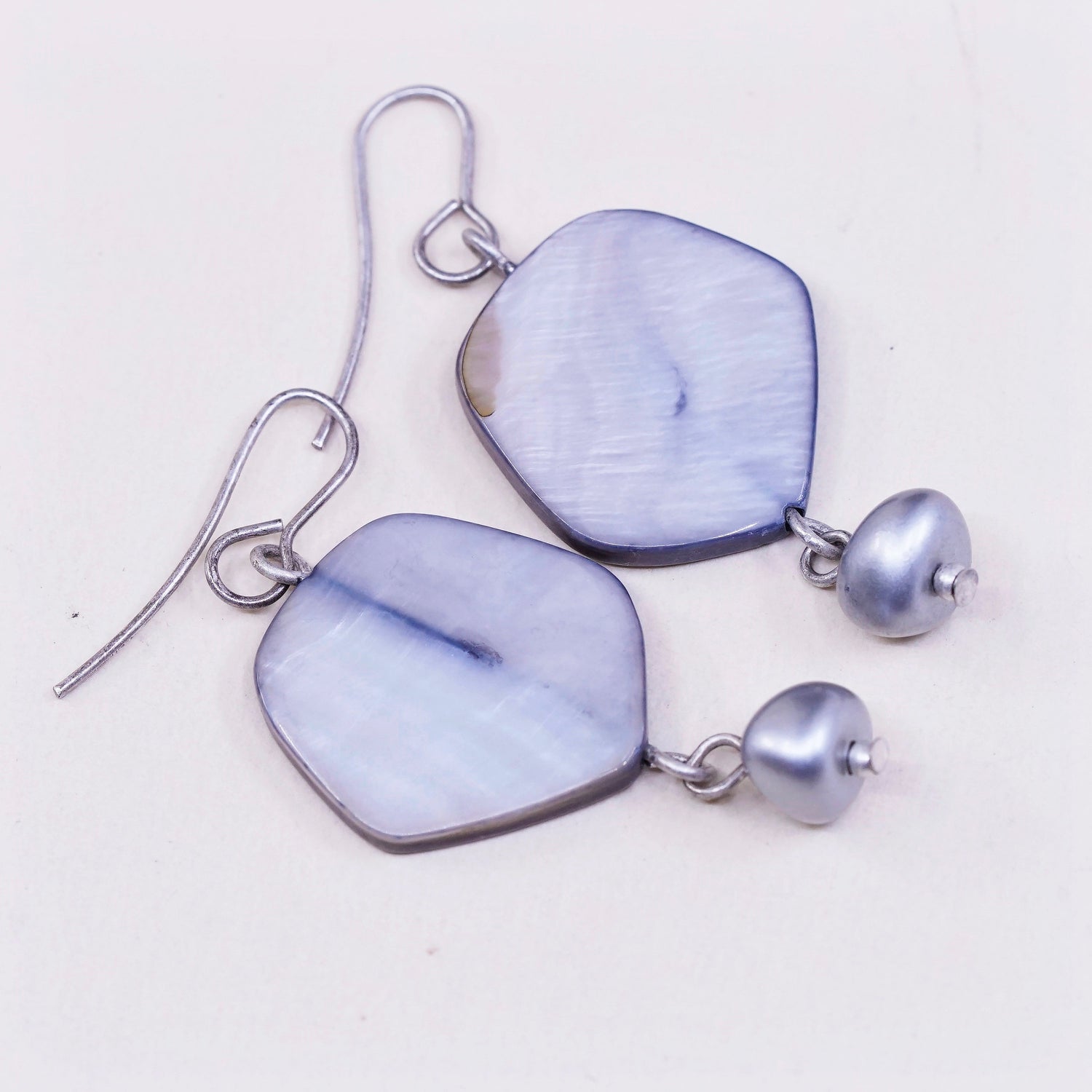 vtg sterling 925 silver handmade earrings w/ mother of pearl disc with pearl