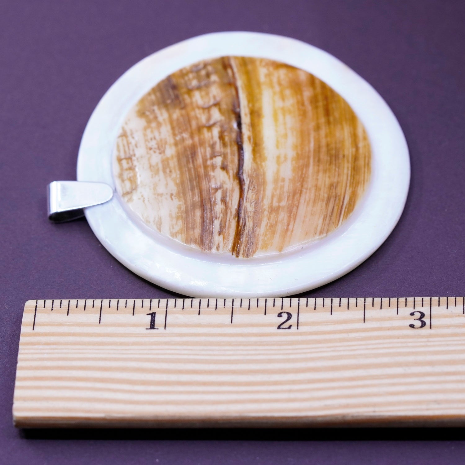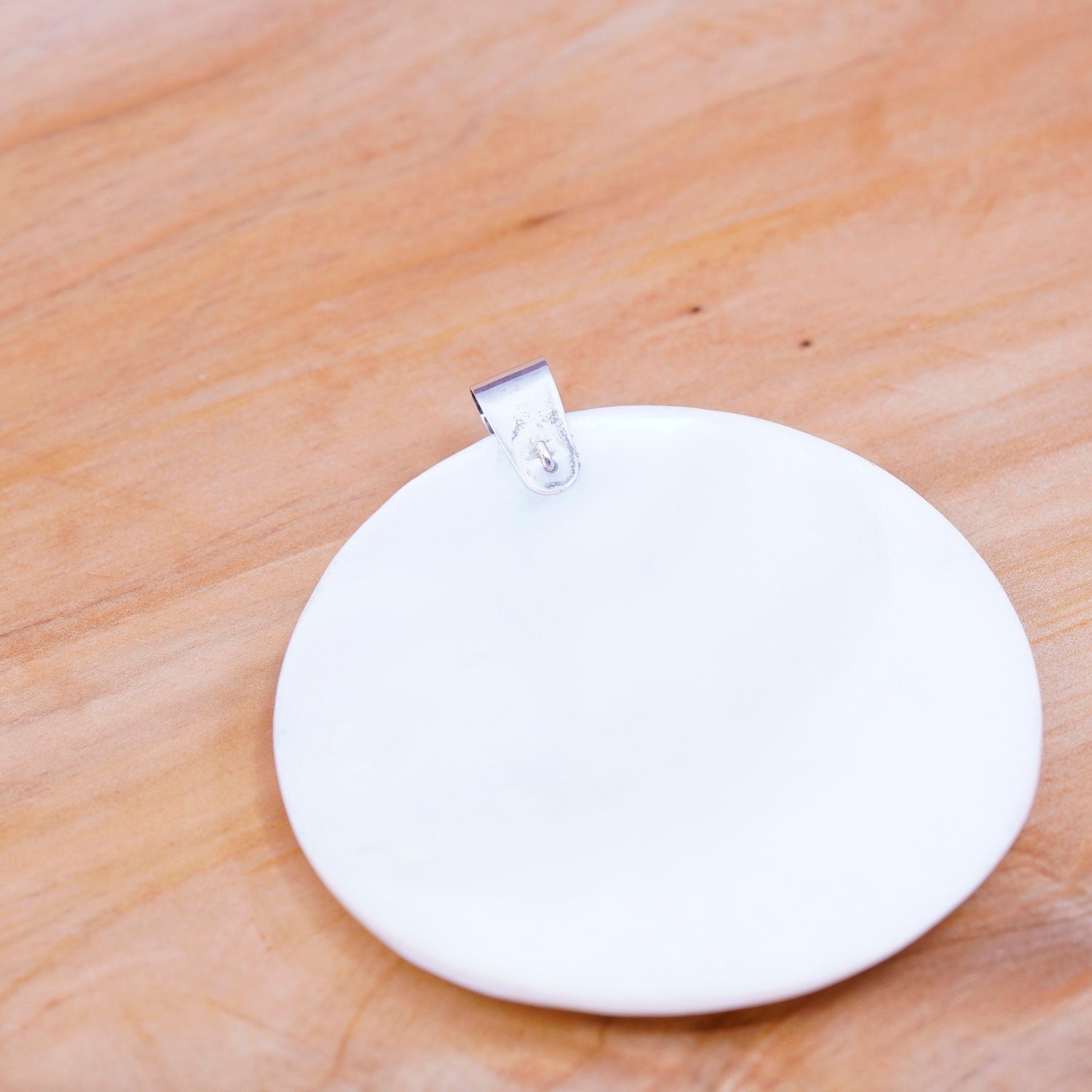 vtg Sterling 925 silver handmade pendant w/ huge mother of pearl wooden texture