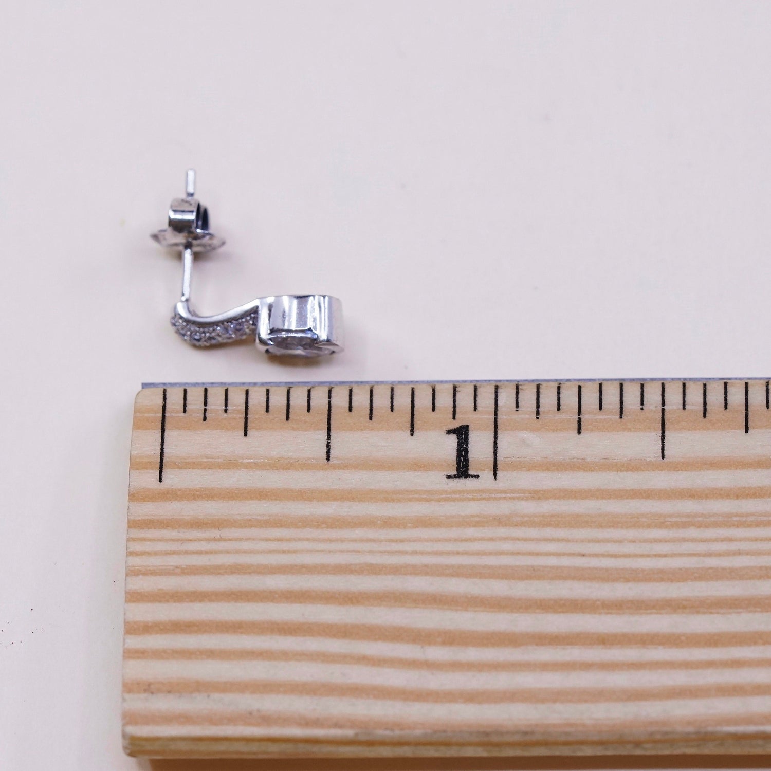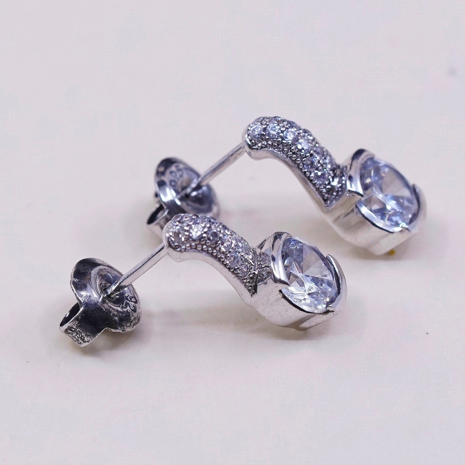 vtg sterling silver cz studs, fashion minimalist earrings, stamped 925, signed
