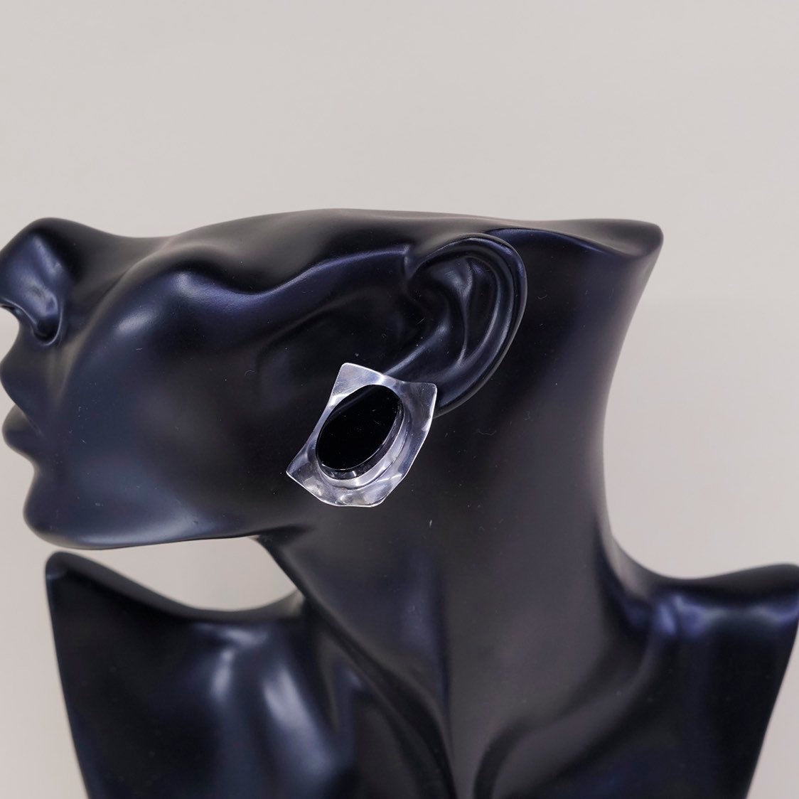 vtg Sterling silver earrings, southwestern mexico 925 studs w/ oval obsidian