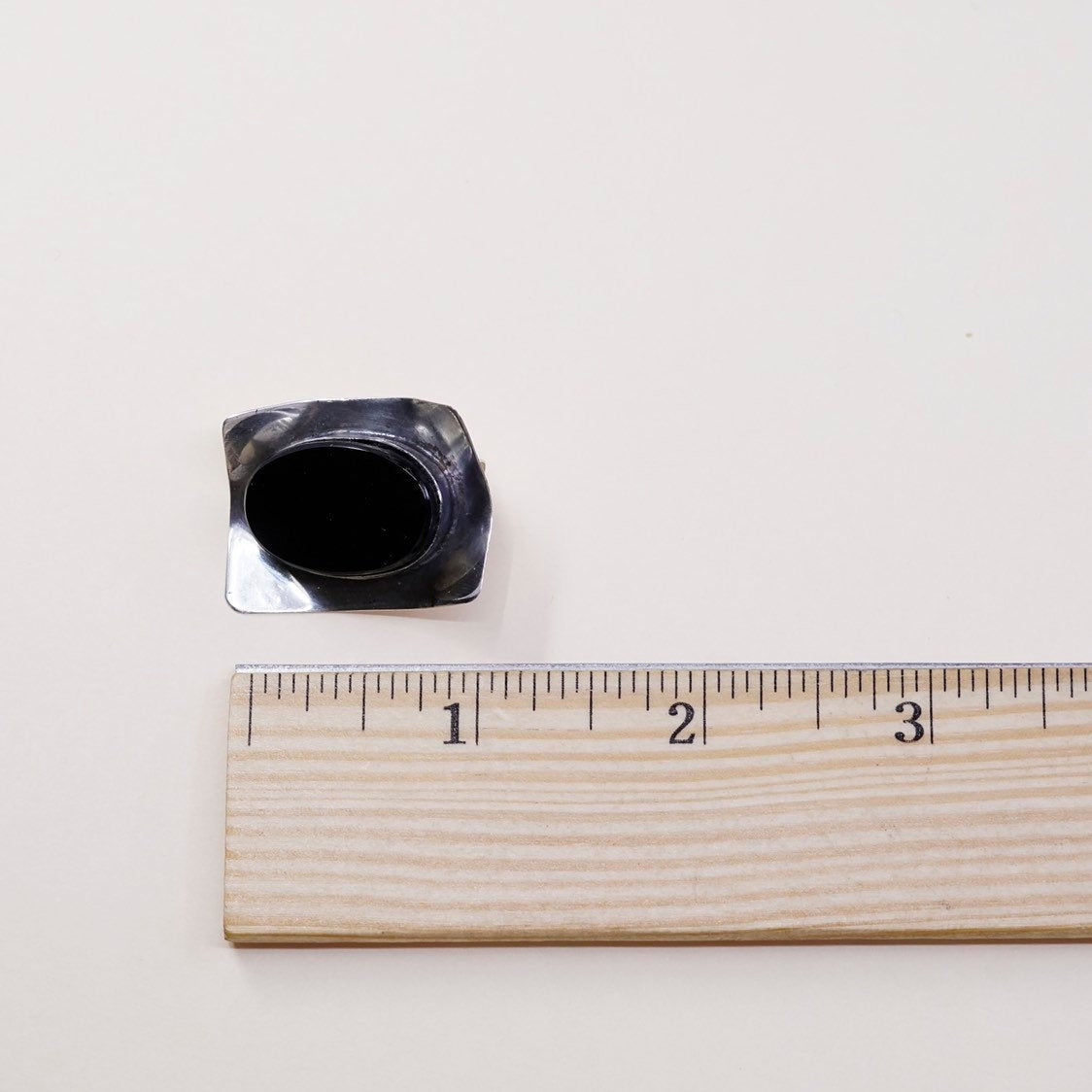 Vintage Sterling silver handmade earrings, southwestern mexico 925 silver studs with oval shaped obsidian, stamped 925 mexico TA-93