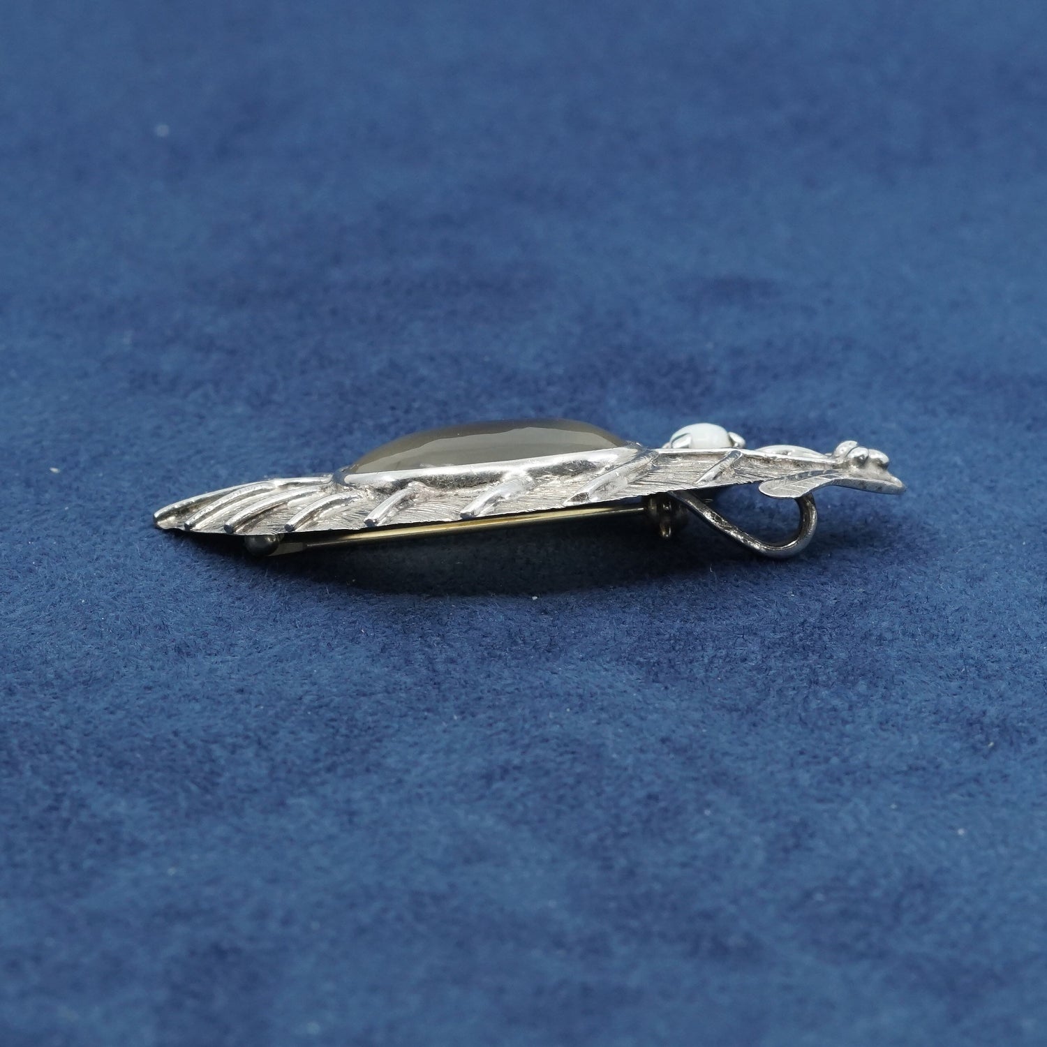 vtg Sterling silver handmade brooch, mexico 925 leaf pendant w/ agate