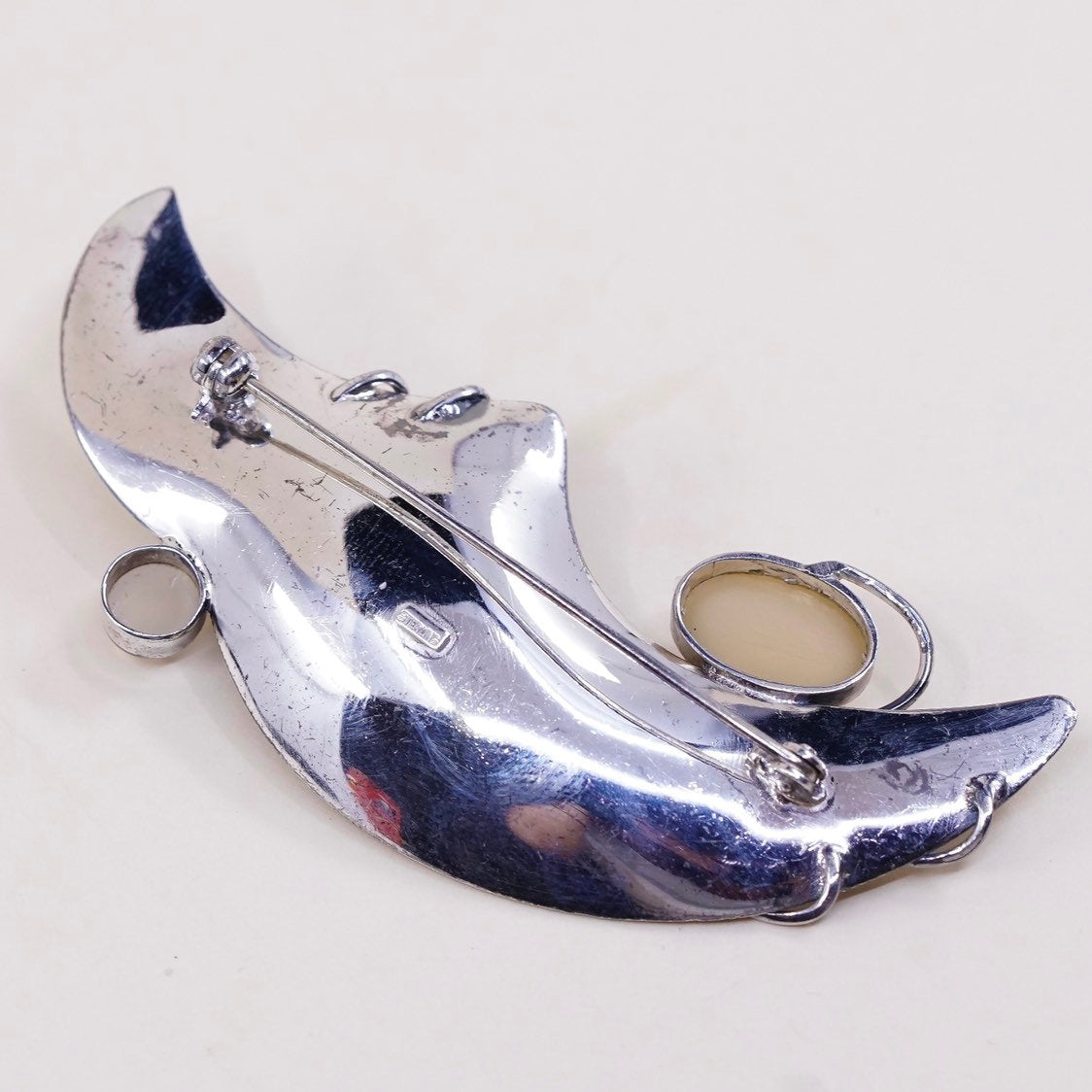Vintage sterling silver handmade brooch, modern 925 silver pin with moonstone beads, Stamped Sterling