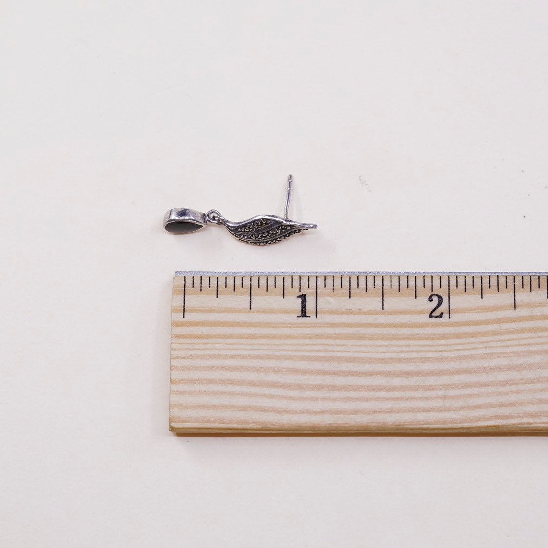 vtg Sterling silver handmade earrings, 925 drops w/ obsidian n marcasite