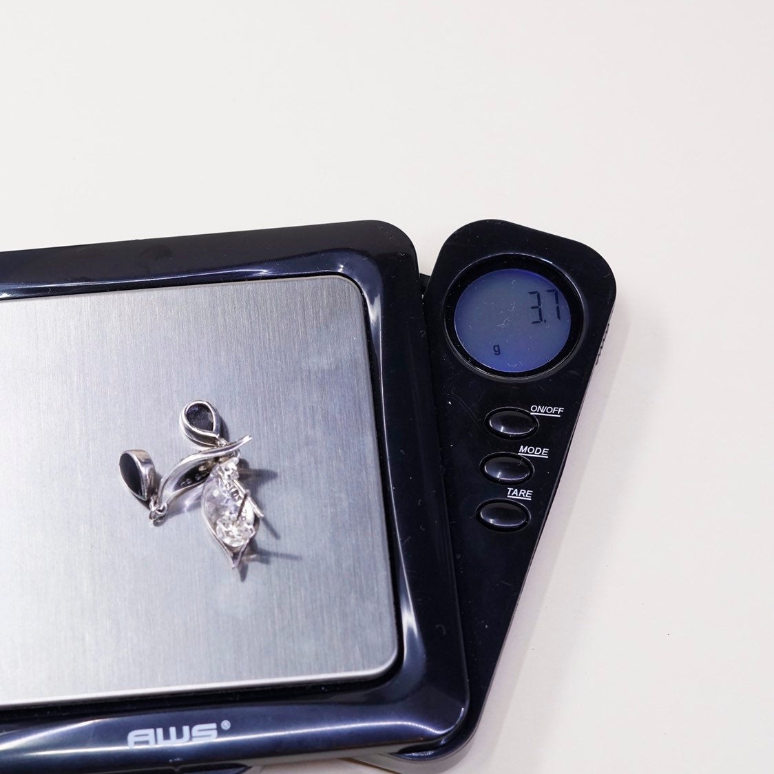 Vintage (000919) Sterling silver handmade earrings, 925 silver drops with obsidian and marcasite details, stamped 925