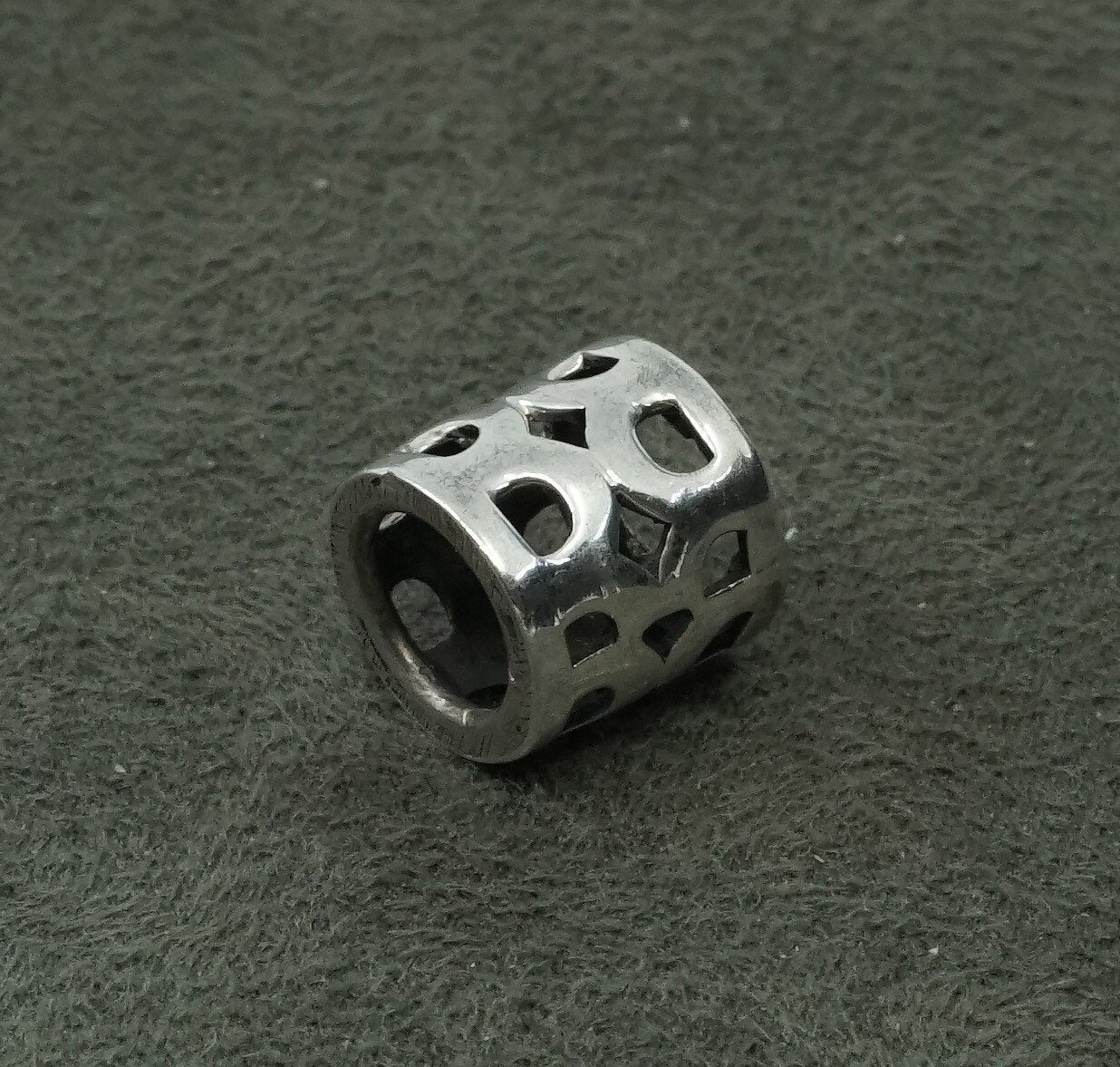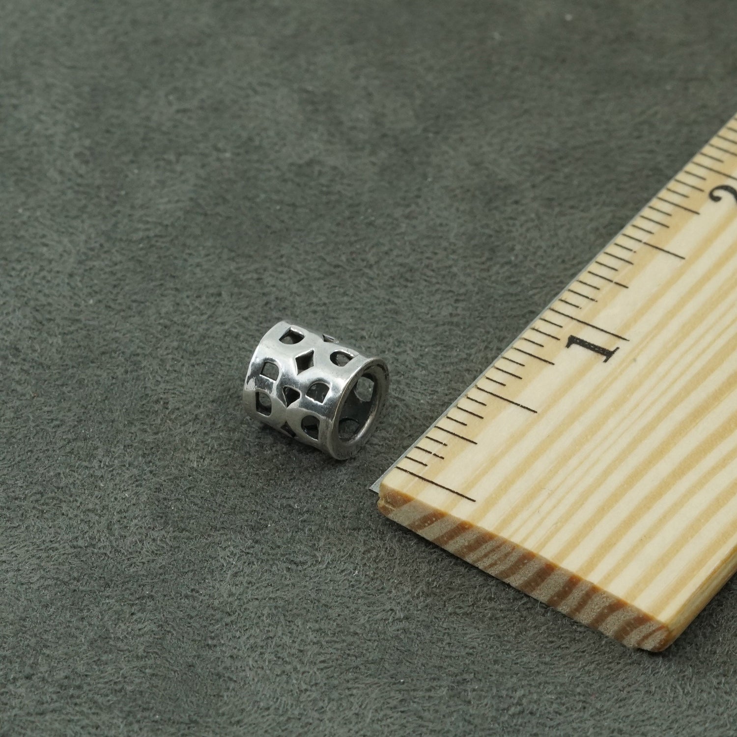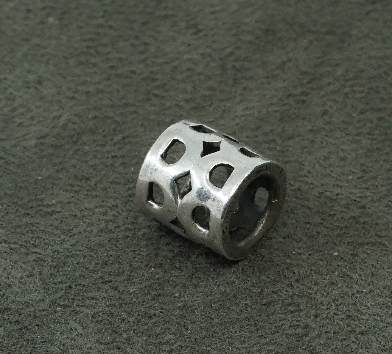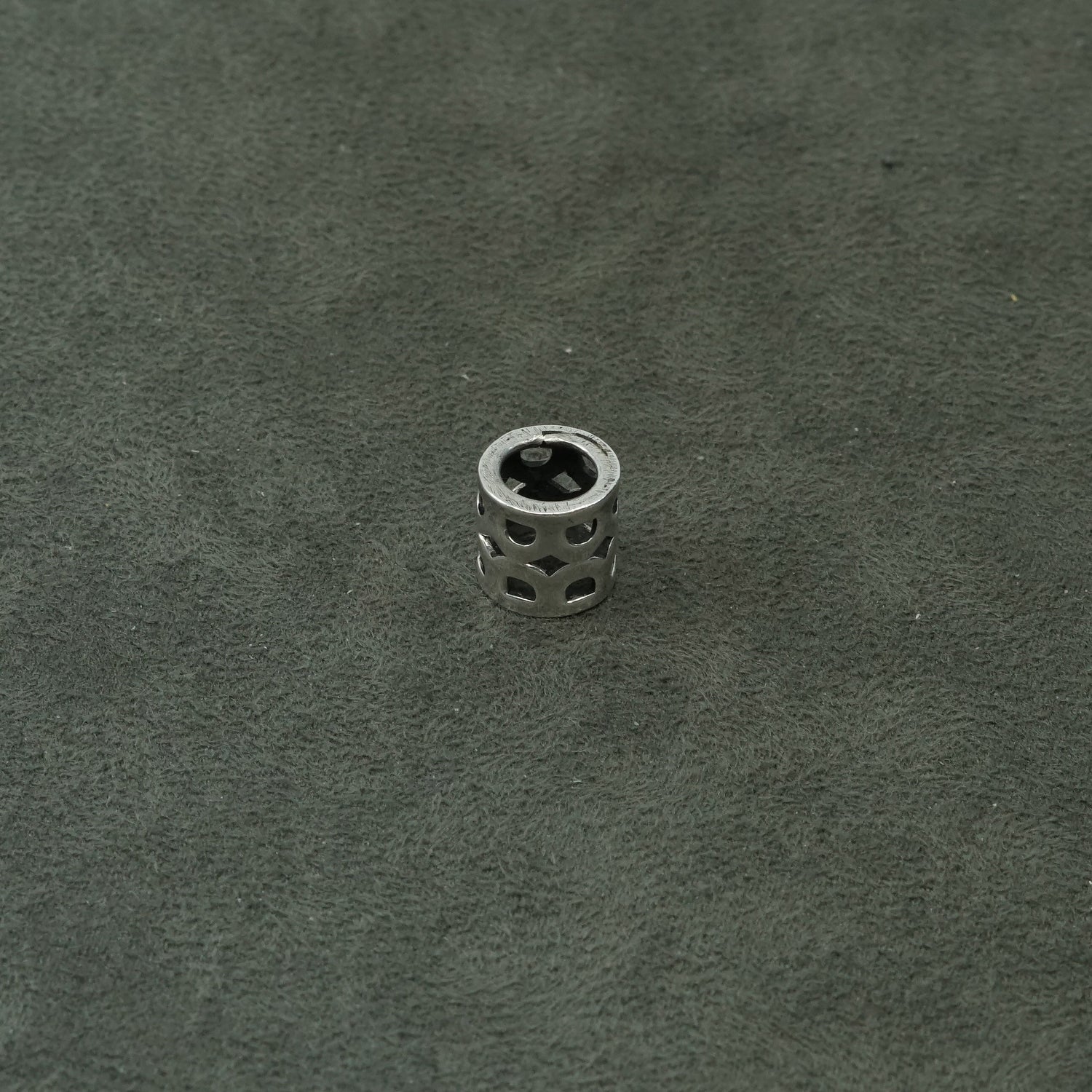 Vintage Sterling silver handmade pendant, solid 925 silver bead charm with pattern cut out, stamped 925