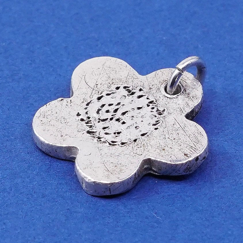 Vintage Sterling silver handmade pendant, solid 925 silver flower charm, silver Tested