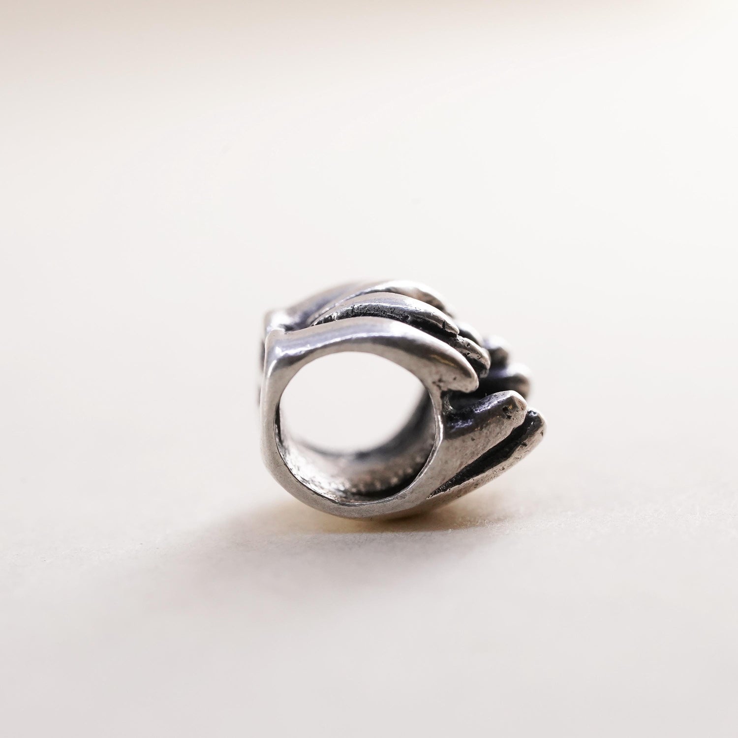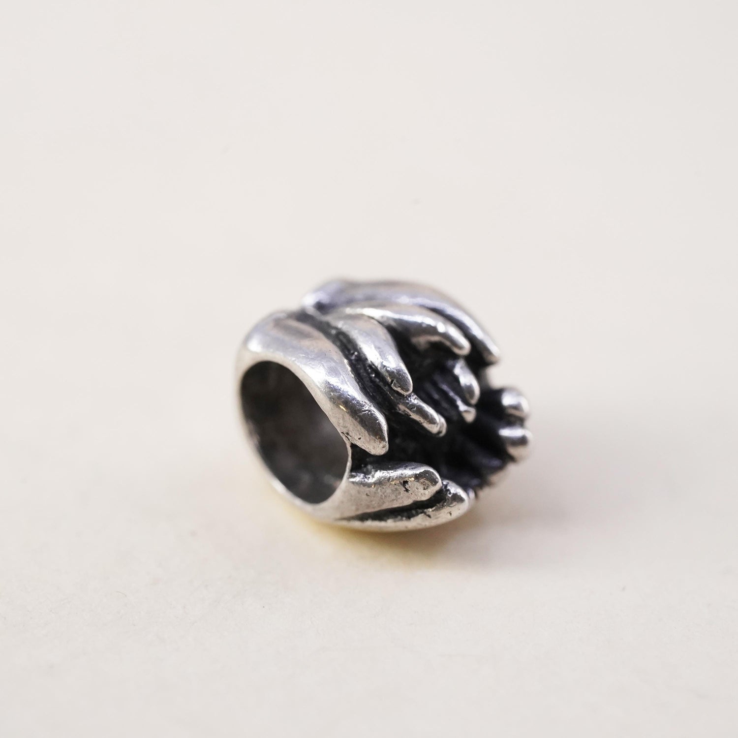 Vintage Sterling silver handmade pendant, 925 mother baby cuddling hands bead charm, stamped 925