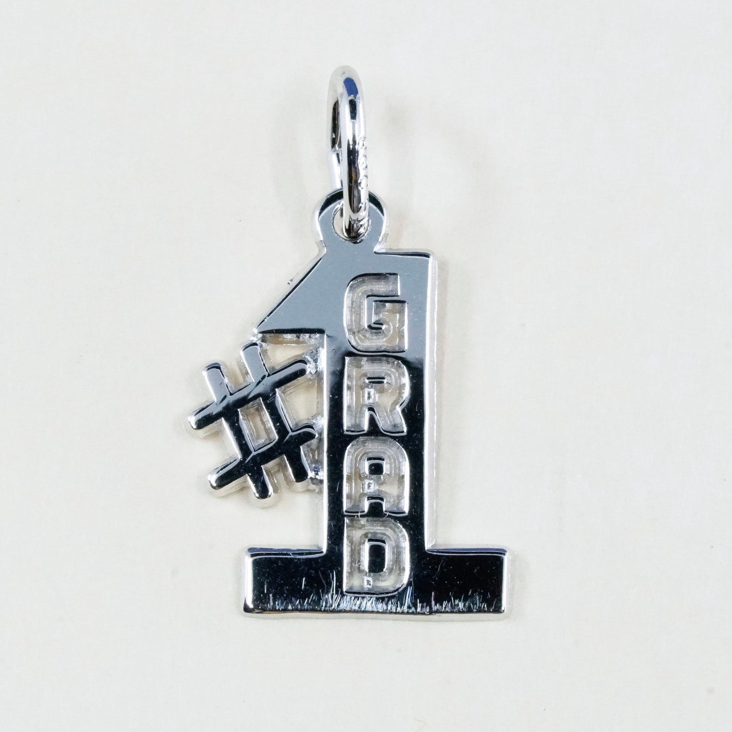 vtg sterling silver handmade pendant, 925 no.1 GRAD charm, stamped sterling