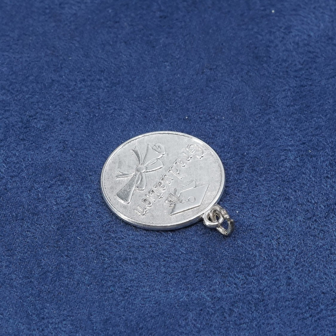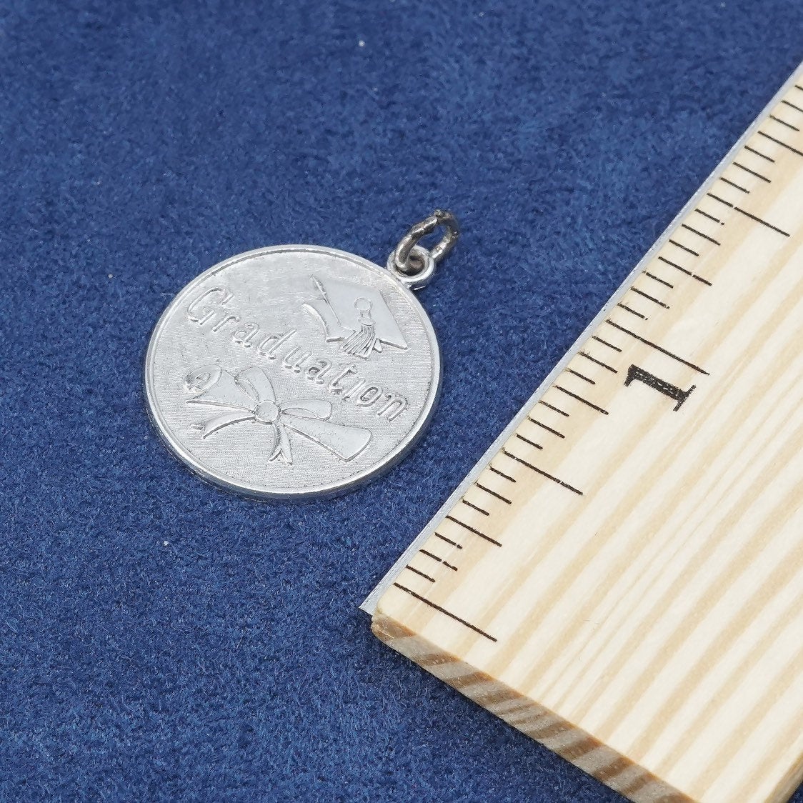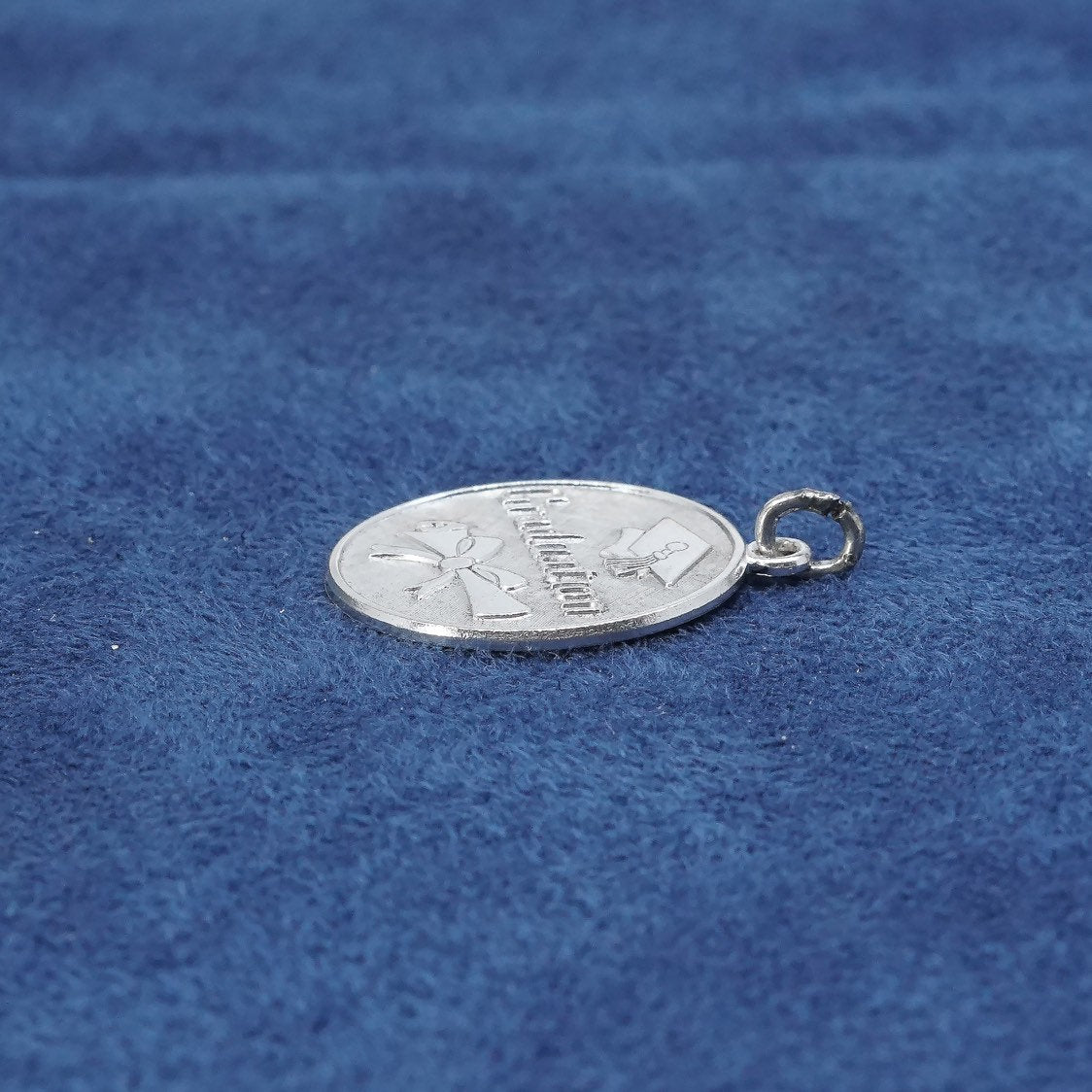 vtg sterling silver handmade pendant, 925 tag charm w/ Graduation”