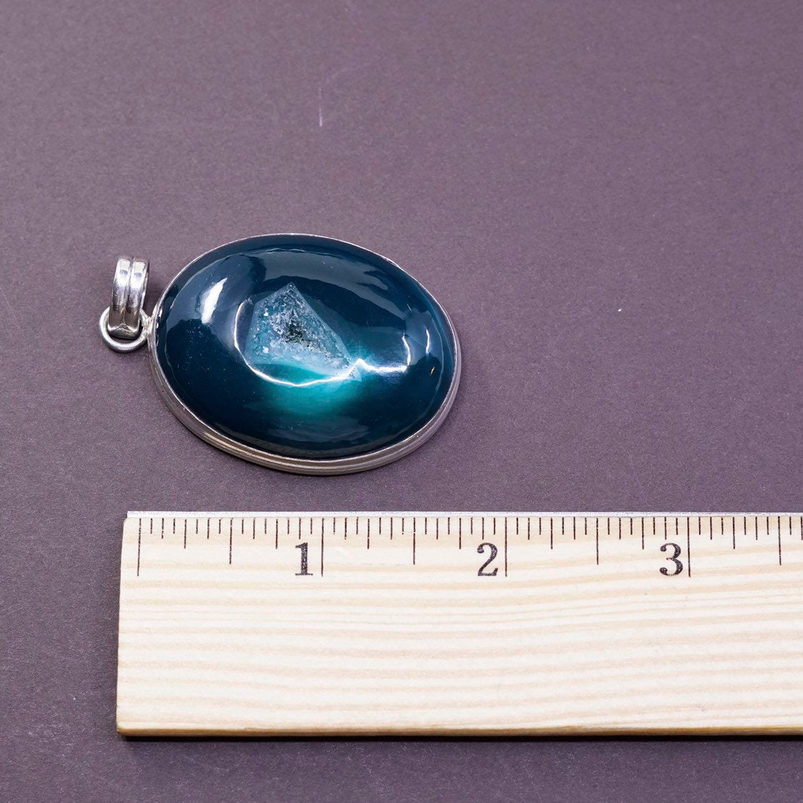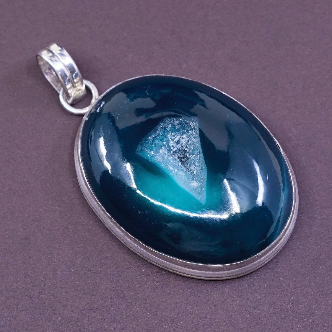 VTG Sterling silver handmade pendant, Mexico 925 w/ green jade druzy pendant