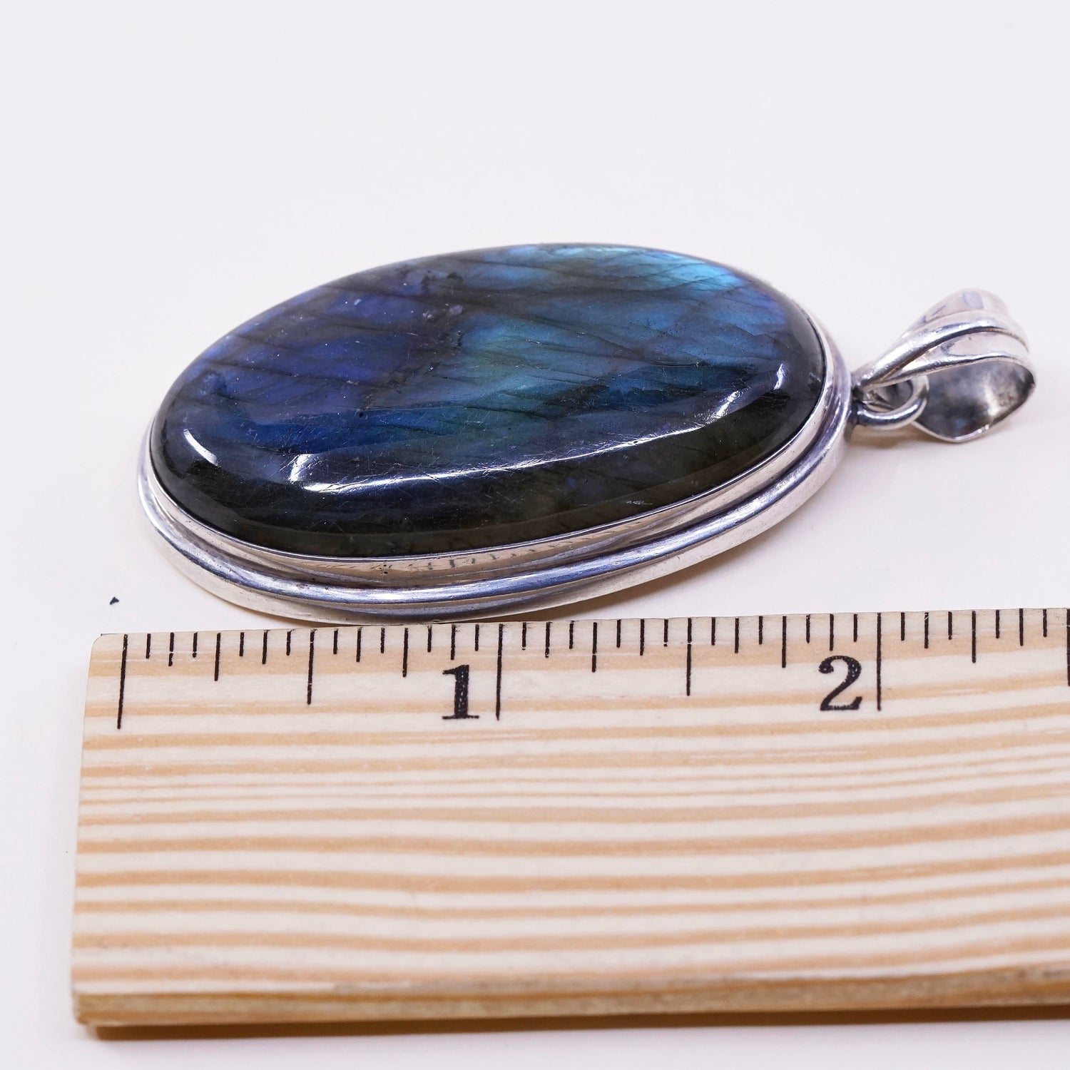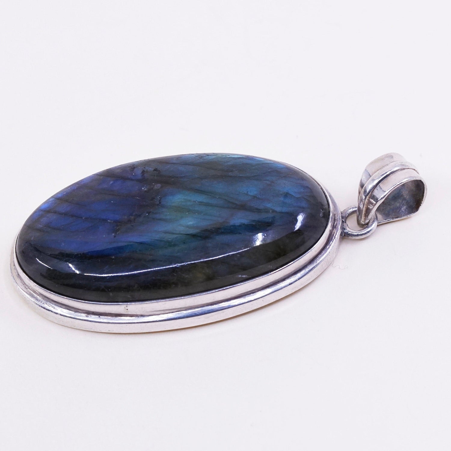 Vintage Sterling silver handmade slide pendant, Mexican 925 with huge oval labradorite, stamped 925