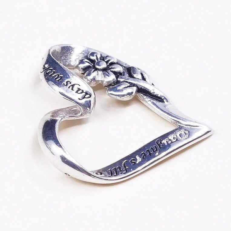 Vintage (020029) Sterling silver inspirational quote pendant, 925 silver heart with "daughters fill out days with sunshine and our hearts with happy memories" engraved, stamped 925 LA
