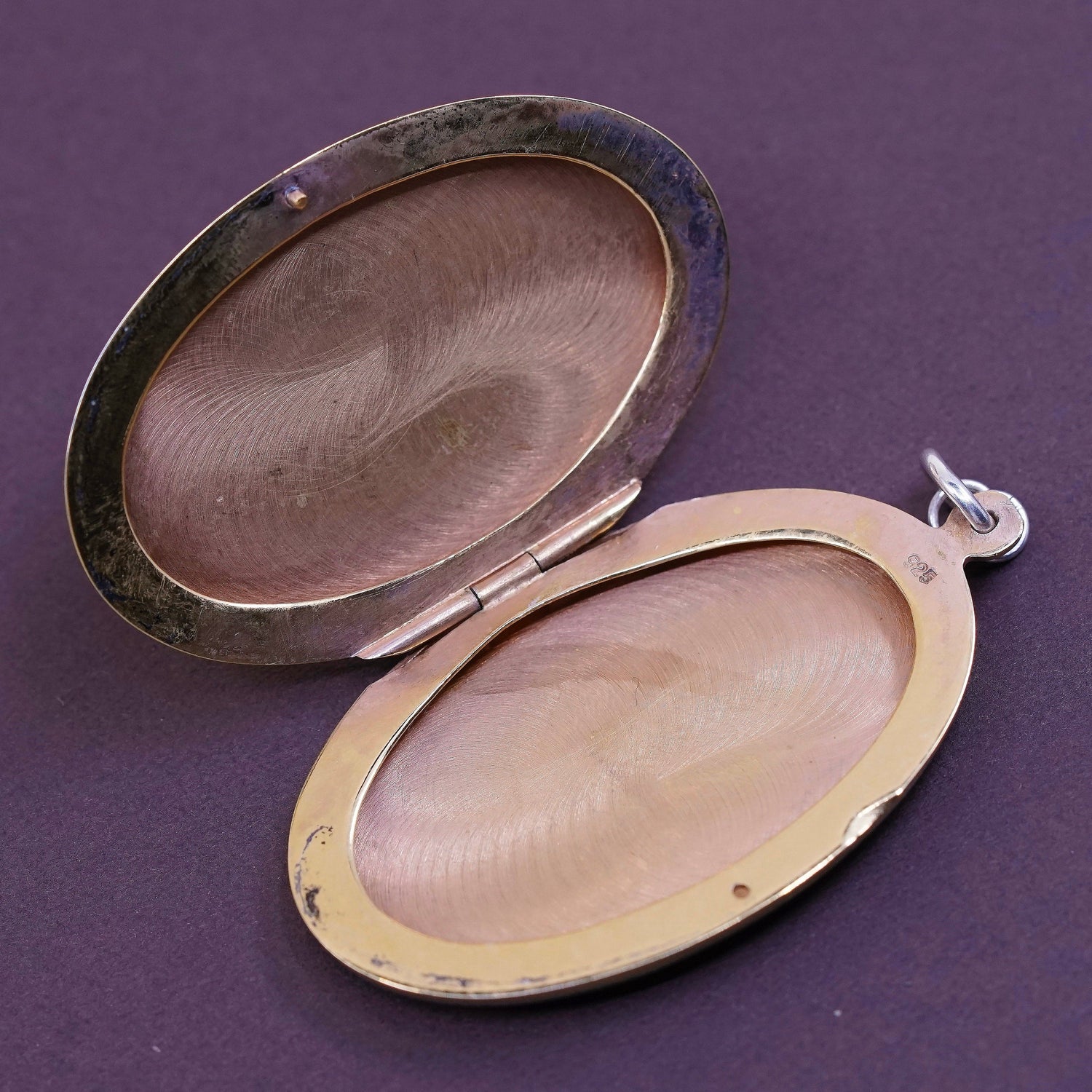 vtg vermeil Gold over Sterling silver handmade pendant, 925 photo locket flower