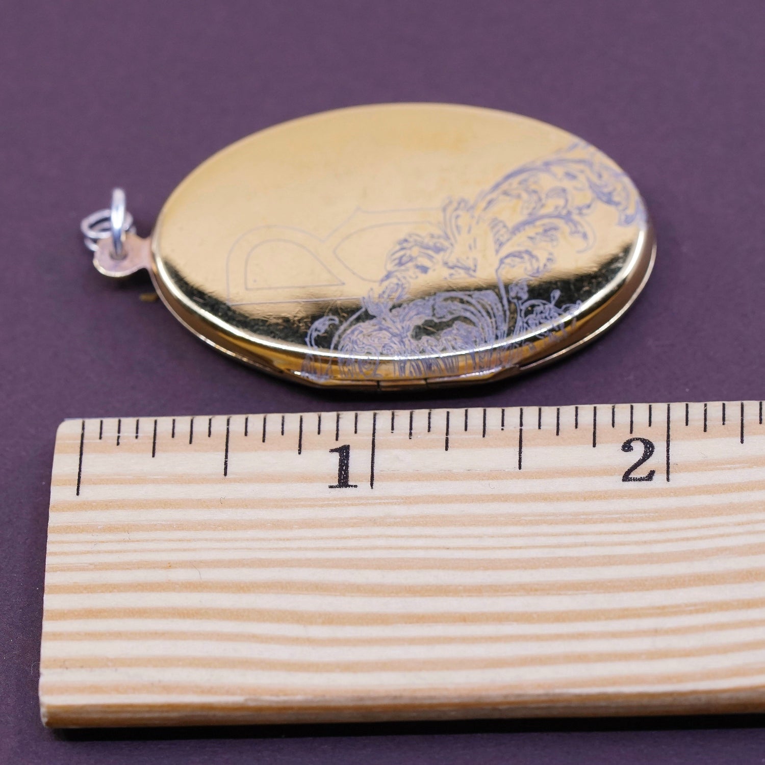 Vintage vermeil Gold over Sterling silver handmade pendant, solid Thailand 925 silver photo locket engraved flower, stamped 925