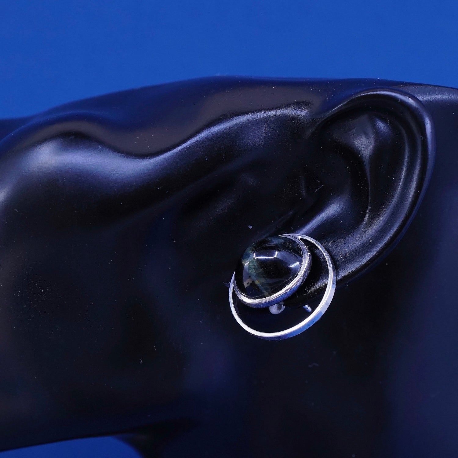 Vintage WWL Southwestern Sterling 925 silver handmade studs earrings with dark green tiger eye, stamped sterling WWL